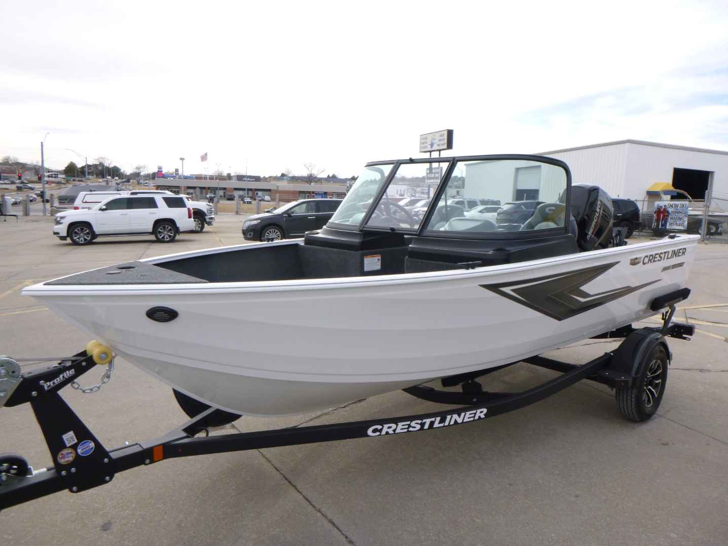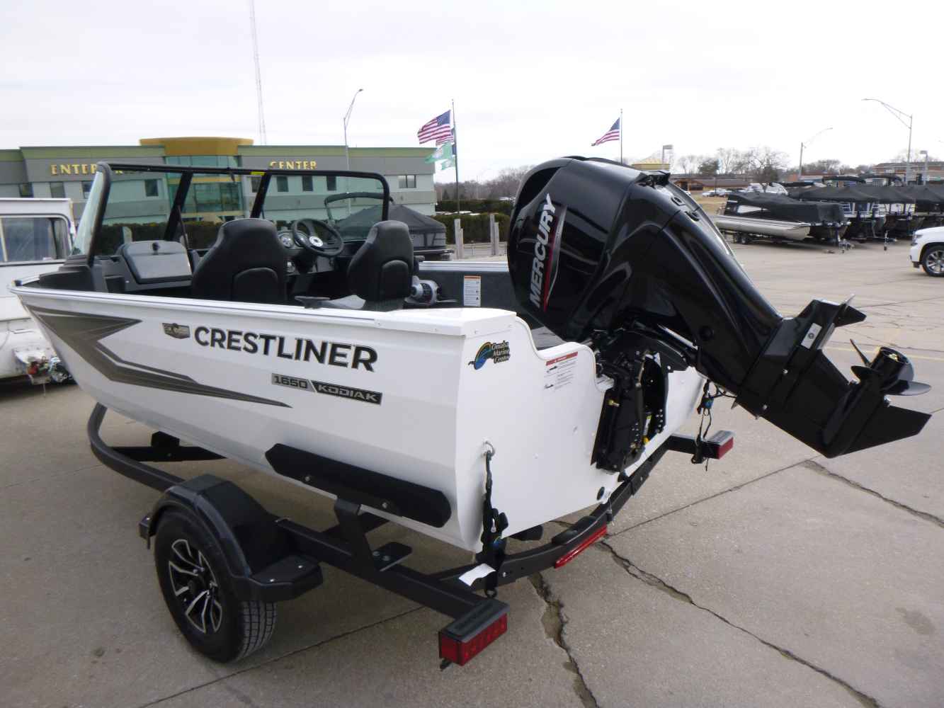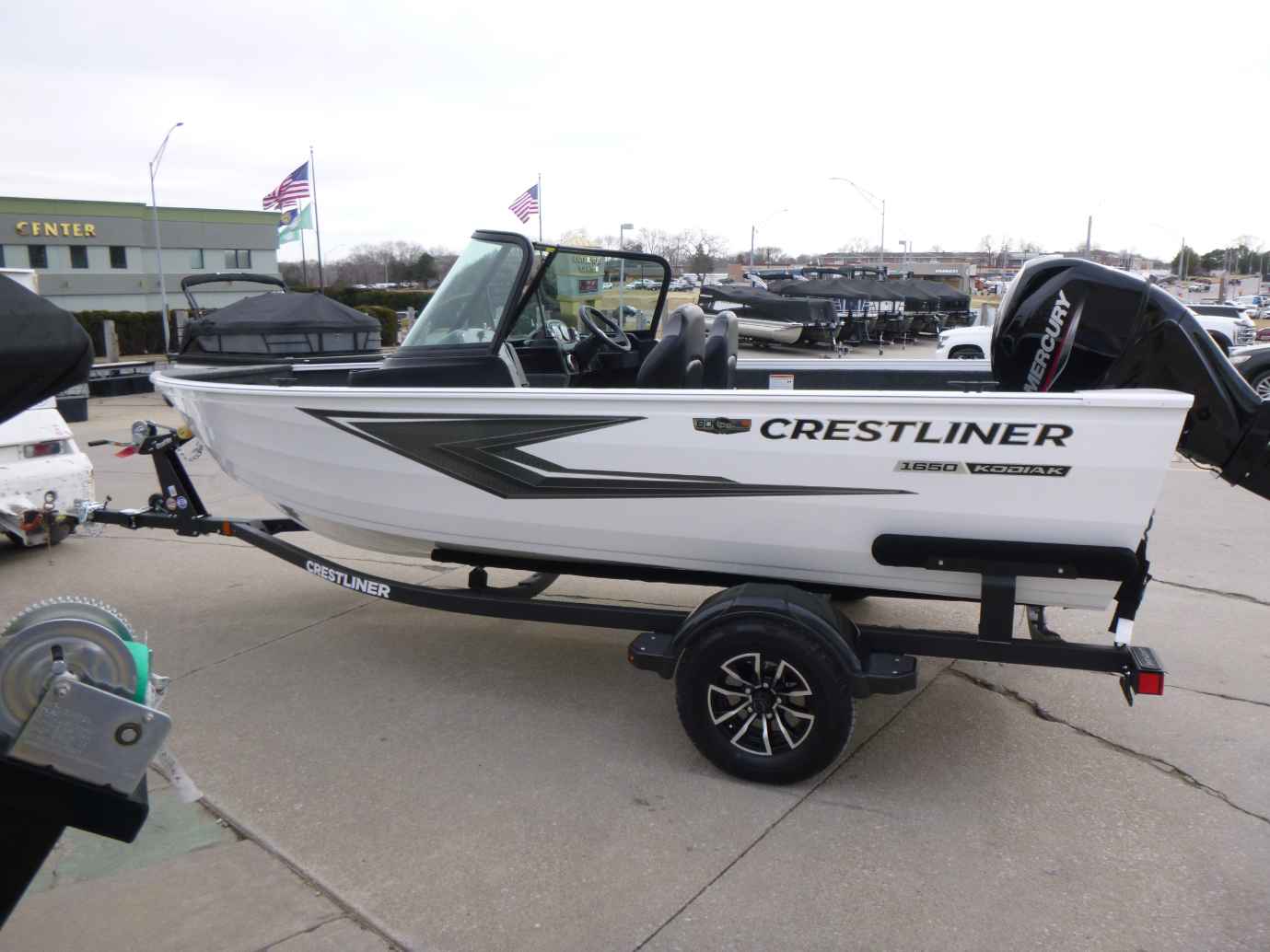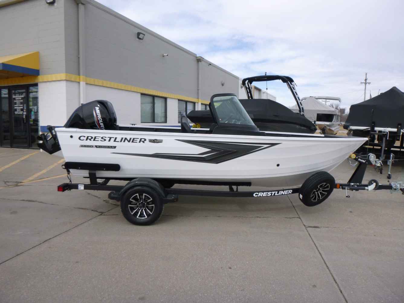 Introducing the 2026 Crestliner 1650 Kodiak, featuring a powerful Mercury 60hp engine, durable vinyl cockpit flooring, and a reliable aluminum propeller. This package includes a single-axle bunk trailer with a spare tire and mount, a Boss stereo system with two speakers, tilt steering for enhanced control, and a premium travel cover for ultimate protection.