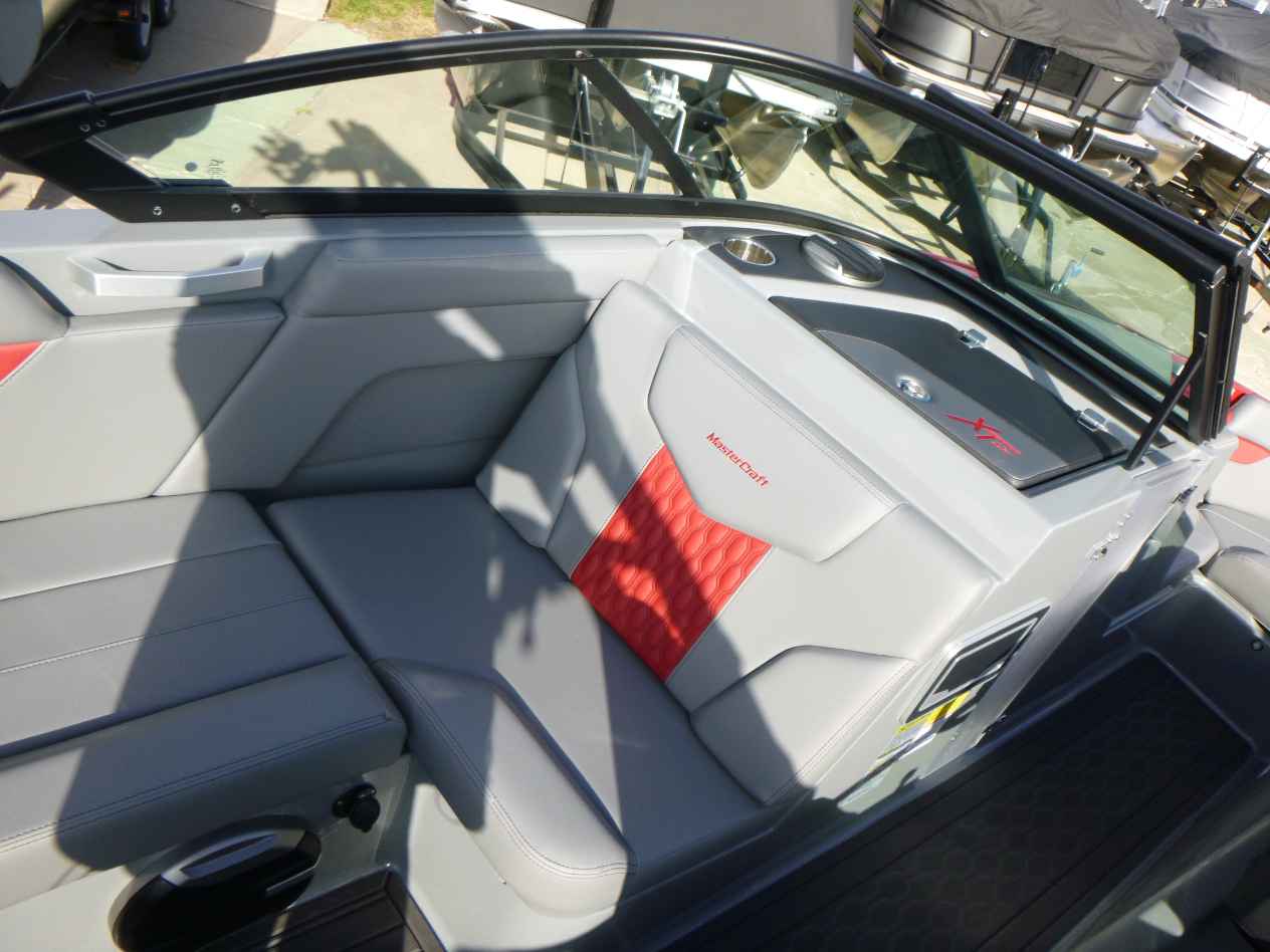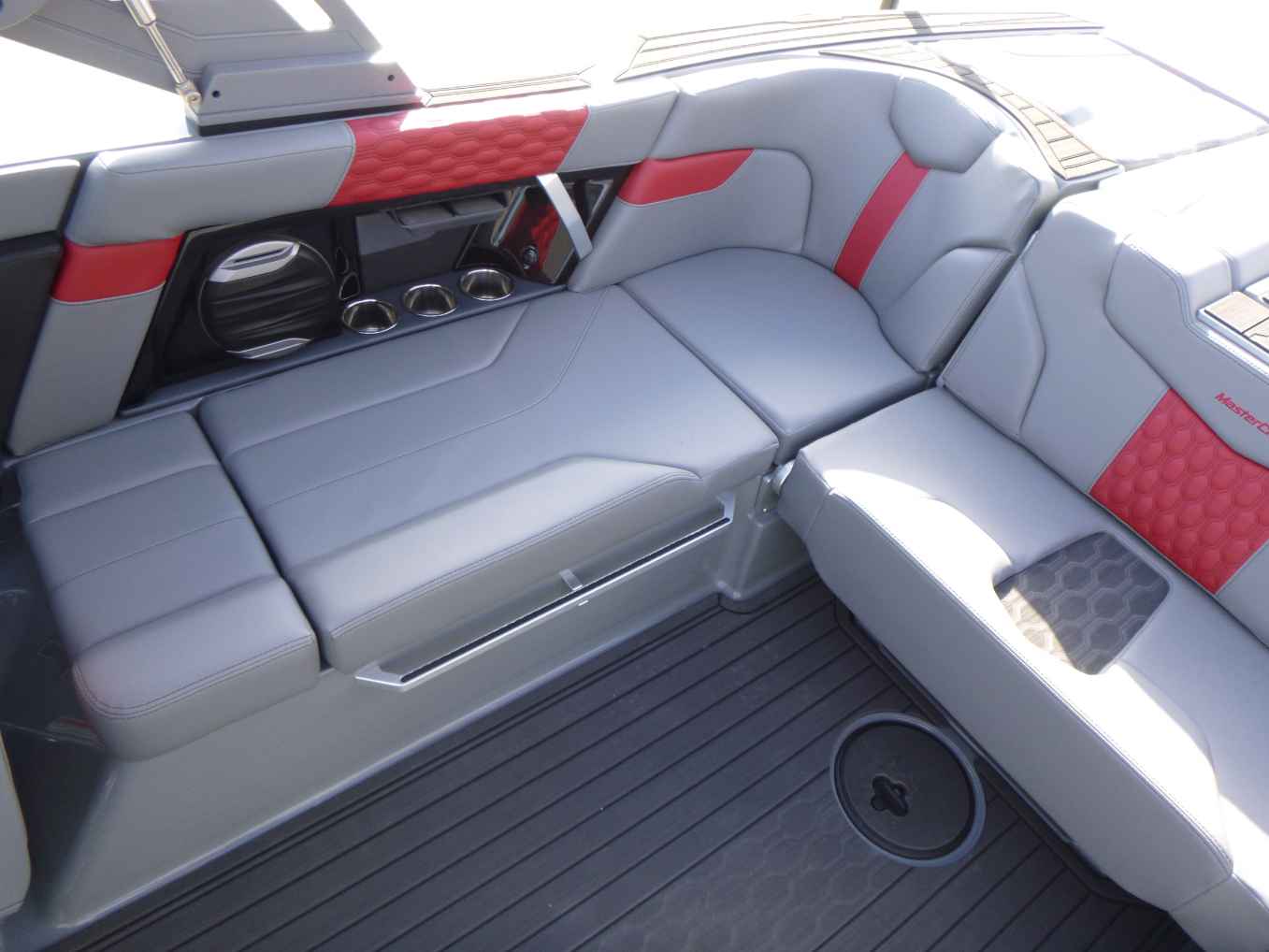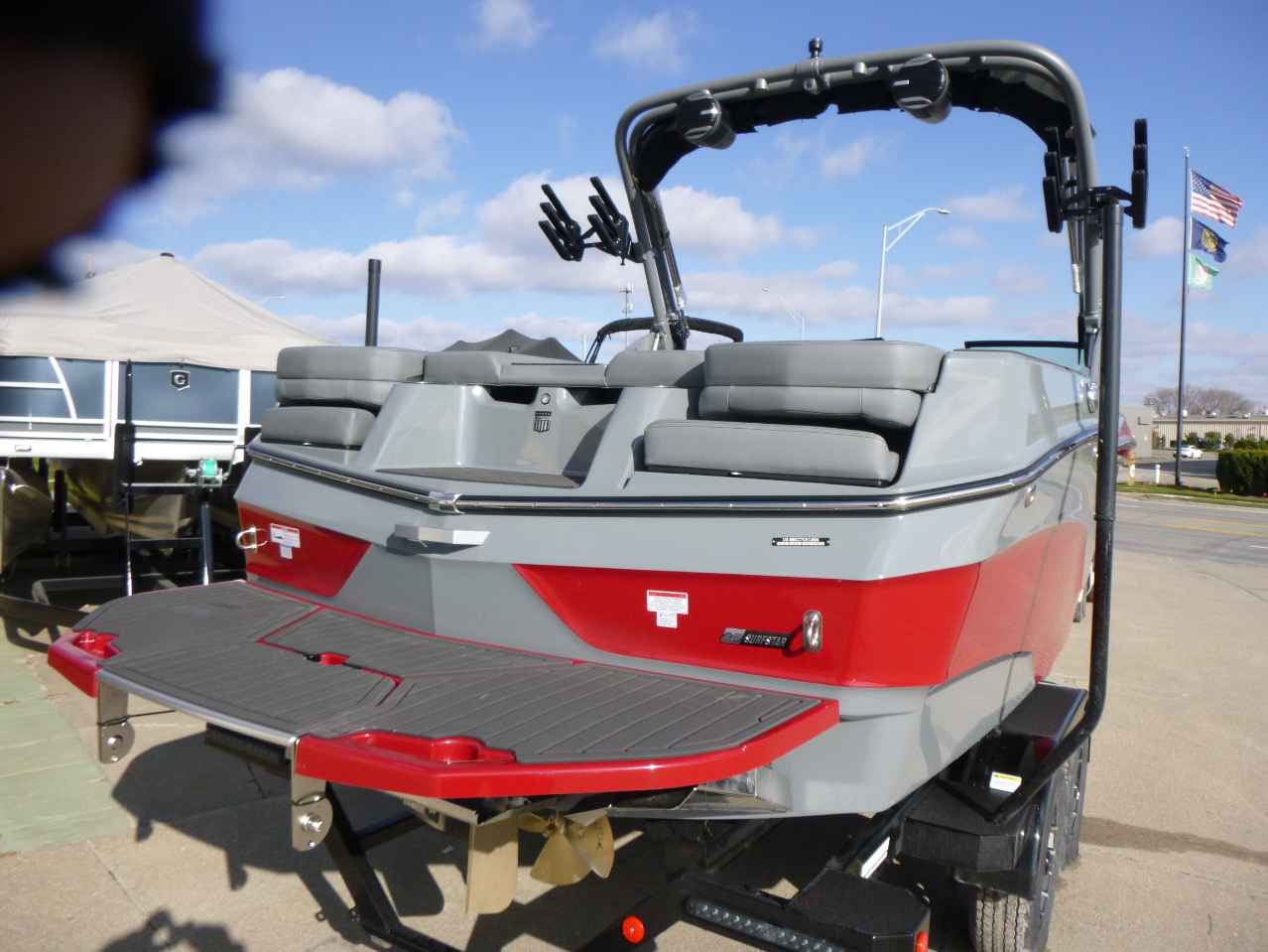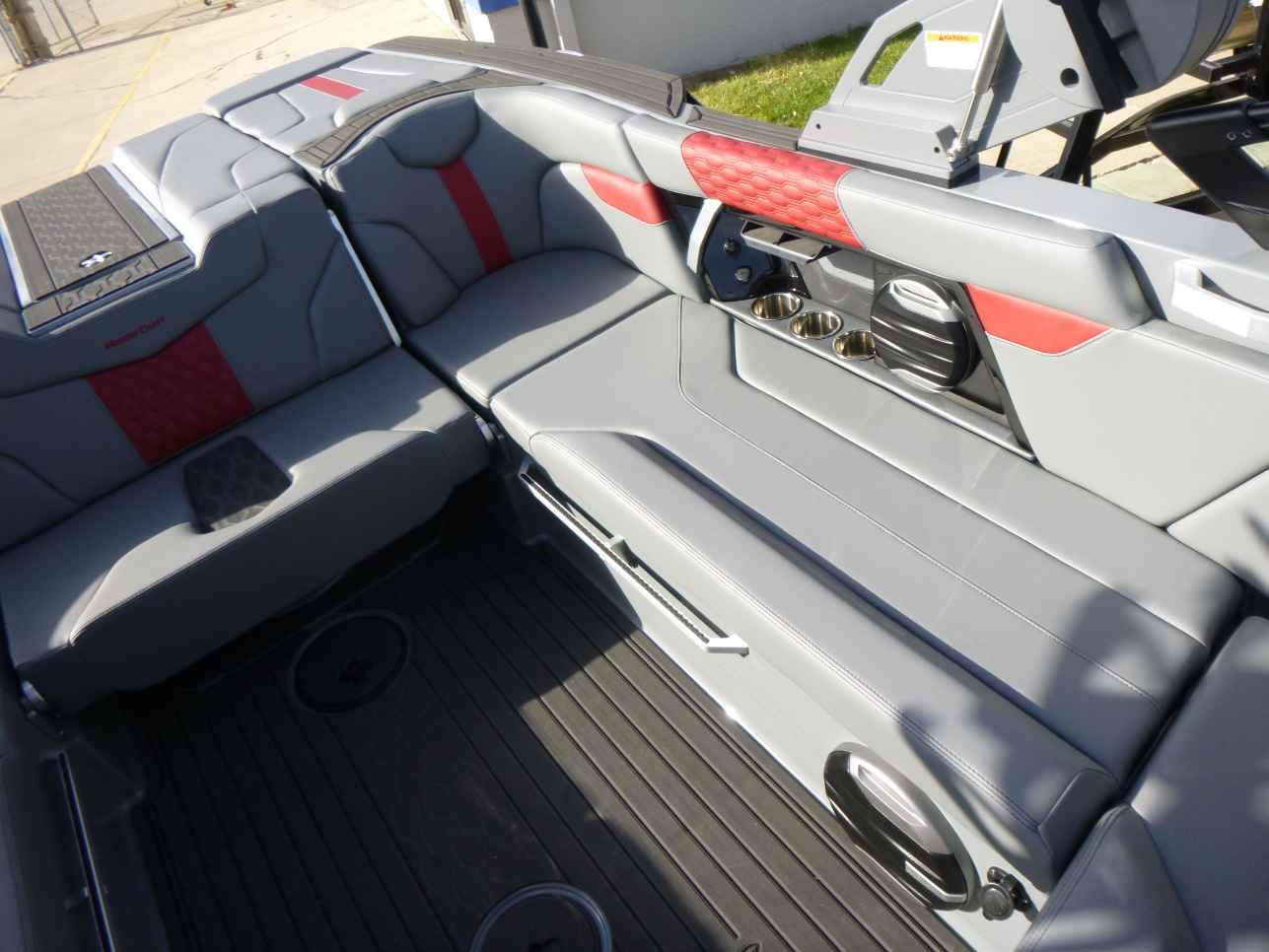 Experience the exceptional Ilmor 5.3GDI HO, featuring a striking Pro Tour Red and Flint Gray exterior combined with a Flint Gray and ProTour Red interior. Enjoy the comfort of Charcoal Seadek flooring and Flint Gray Z6 Tower, complemented by two powerful Black M80 Tower Speakers. Take in stunning views with the Activ-View Panoramic and protect your gear with the Over Tower Cover. Additional highlights include a 110V Charger, Convertible R/S, Sunpad Flip Seating, Hydraulic Helm Seat Lift, SurfStar system, and a convenient Tandem Axle Trailer for easy transport.