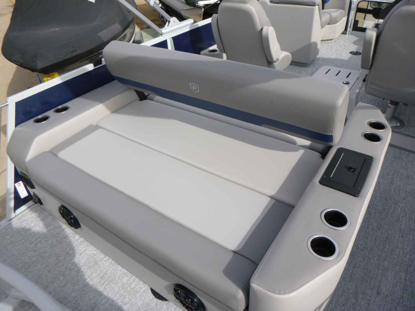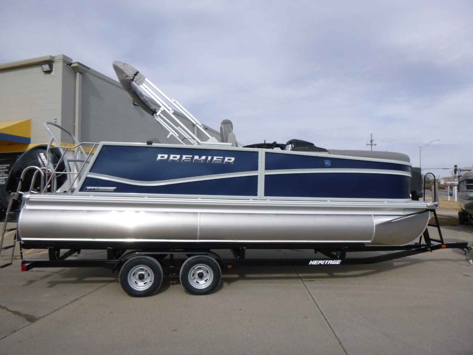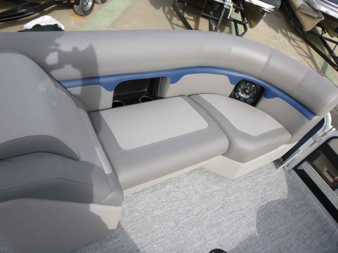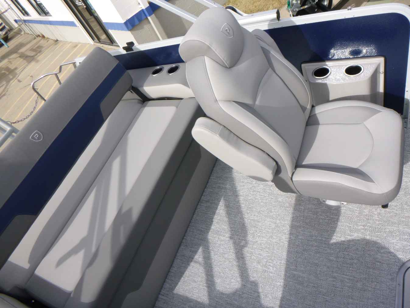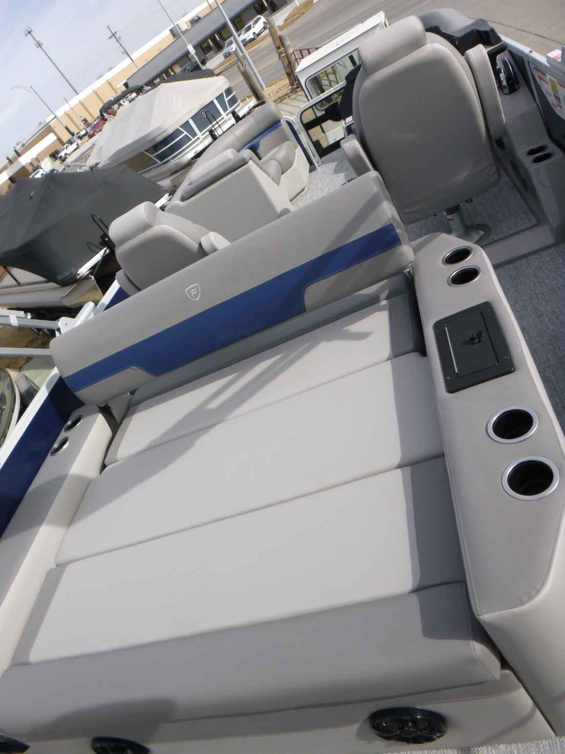 Featuring a Mercury 150XL engine, PTX28 model, elegant Nautical Blue exterior, Moonstone Rails, and Mountain Gray interior. Equipped with a Ski Tow Bar, Lowrance Eagle 5 Fish Finder, Wetsounds Stereo, Power Bimini, and comes with a T/A Trailer.