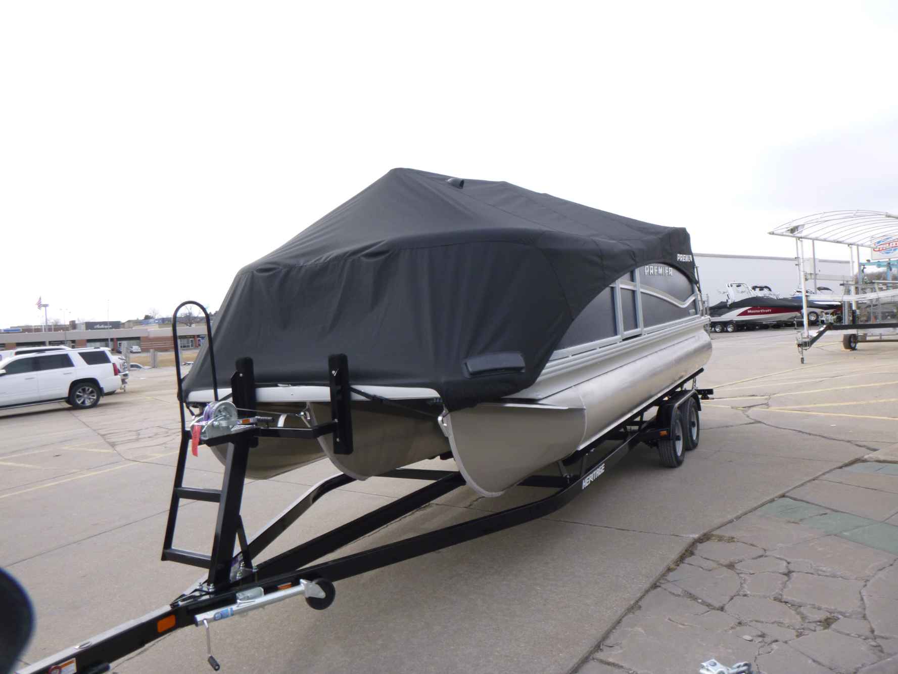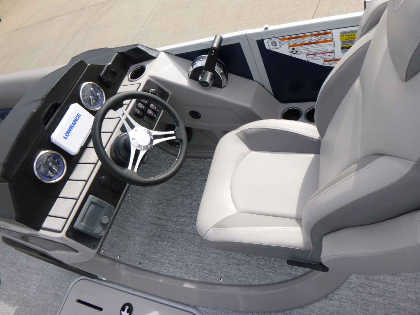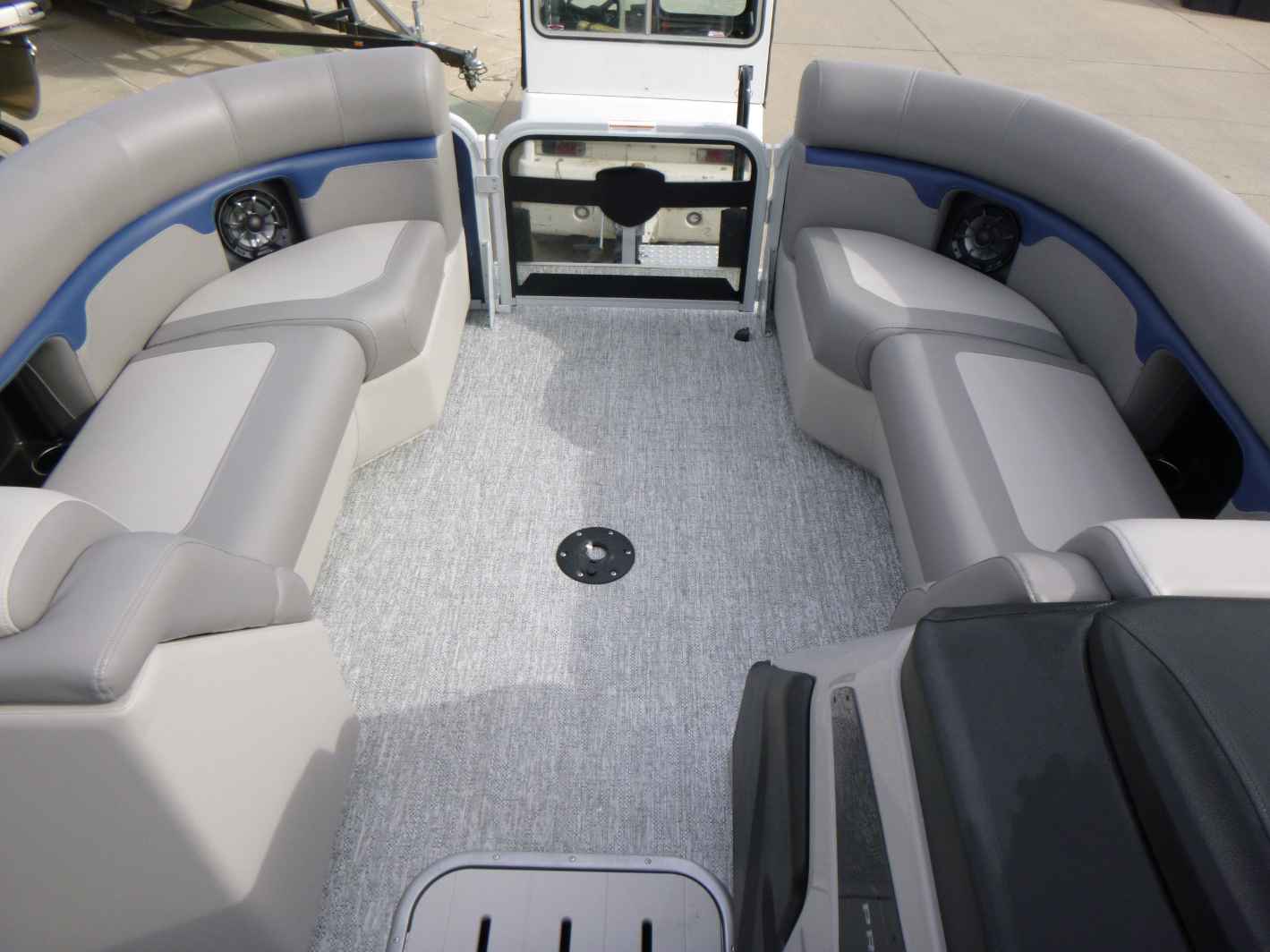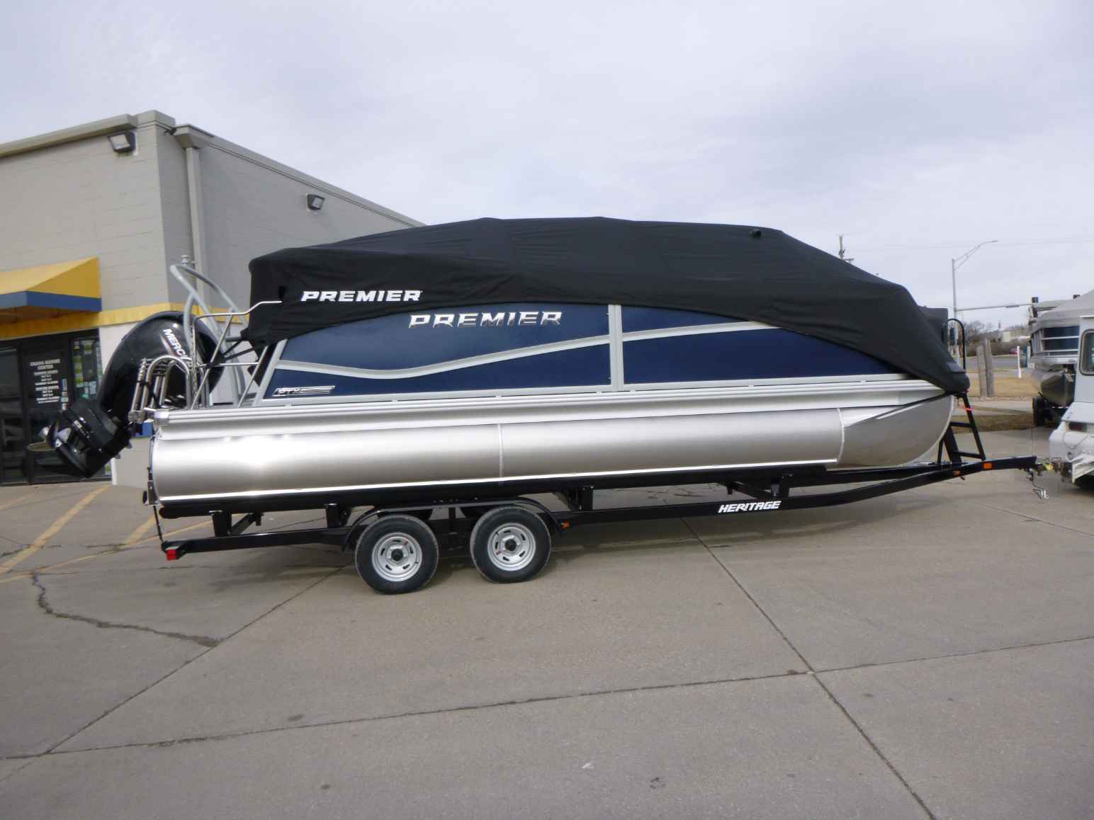 Featuring a Mercury 150XL engine, PTX28 model, elegant Nautical Blue exterior, Moonstone Rails, and Mountain Gray interior. Equipped with a Ski Tow Bar, Lowrance Eagle 5 Fish Finder, Wetsounds Stereo, Power Bimini, and comes with a T/A Trailer.